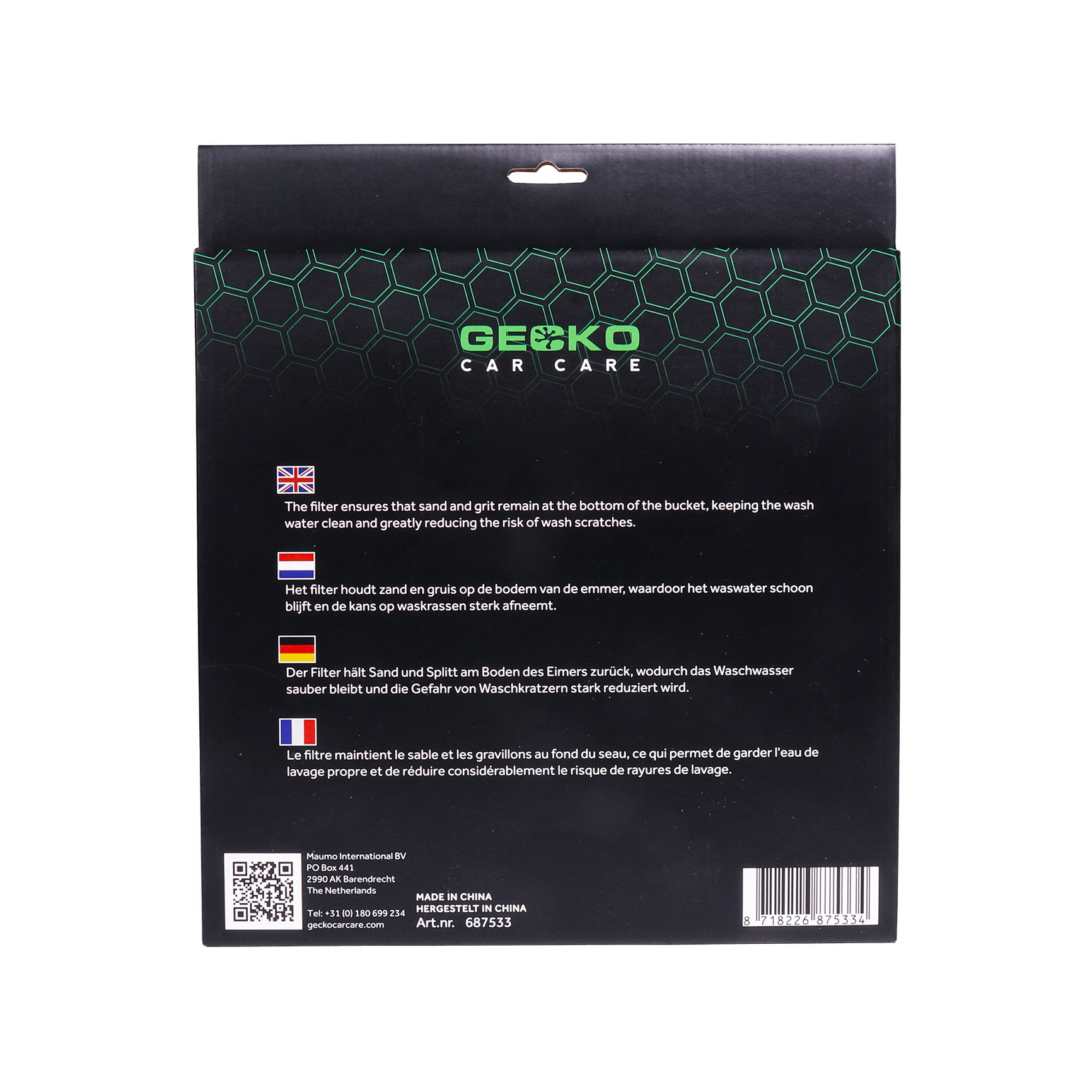 De Gecko Bucket filter is een inlegrooster dat zand en gruis op de bodem van de Gecko wasemmer houdt. Het filter voorkomt dat zand zich in het water beweegt, waardoor de kans op krassen tot een minimum wordt beperkt. Het voorkomen van krassen door zand en gruis in de lak is altijd een uitdaging zonder filter. Gebruik daarom altijd de Gecko bucket filter als u met de Gecko wasemmer werkt. Het filter is slim ontworpen om vuil en gruis te scheiden van het waswater, waardoor het zich niet kan hechten aan de Gecko washandschoen of Gecko jumbo Spons. Dit voorkomt uiteindelijk krassen en waskringen tijdens het wassen. Door het gebruik van de Gecko bucket filter wordt de levensduur van andere wasbenodigheden zoals een washandschoen of spons verlengd. Het is daarnaast gemaakt van hoogwaardig en zwaar materiaal, waardoor het inlegrooster extra lang meegaat en kan hij keer op keer gebruikt worden.
