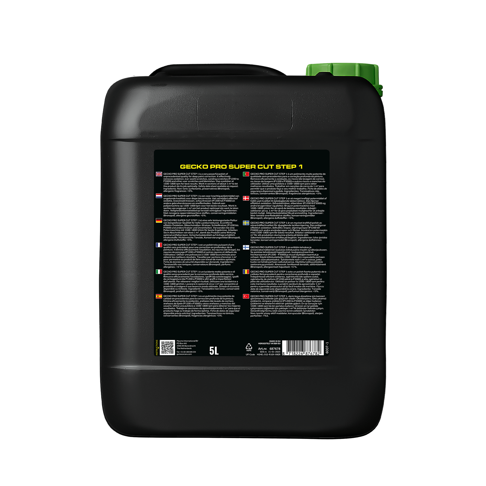 Let op: de Gecko Pro Super Cut biedt geen bescherming. Voor langdurige glans en bescherming raden wij aan af te werken met de Gecko Pro Wax Finish & Protect (artikelnummer 687692).