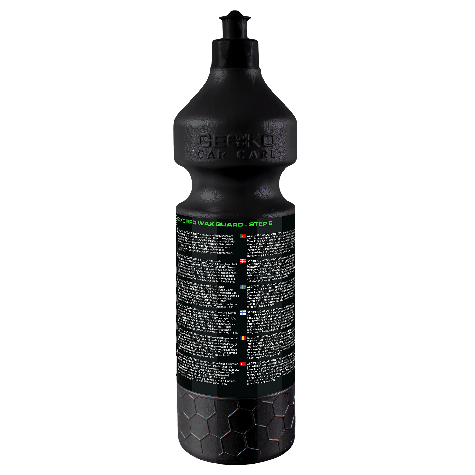 De Gecko Pro Wax Guard is speciaal ontwikkeld voor professioneel gebruik als eindlaag van het detailingproces. Geschikt voor zowel nieuwe als gepolijste lakken, maar ook als onderhoud op voertuigen met een bestaande coating. Verlengt zichtbaar de glans en beschermt tegen dagelijkse invloeden van buitenaf.