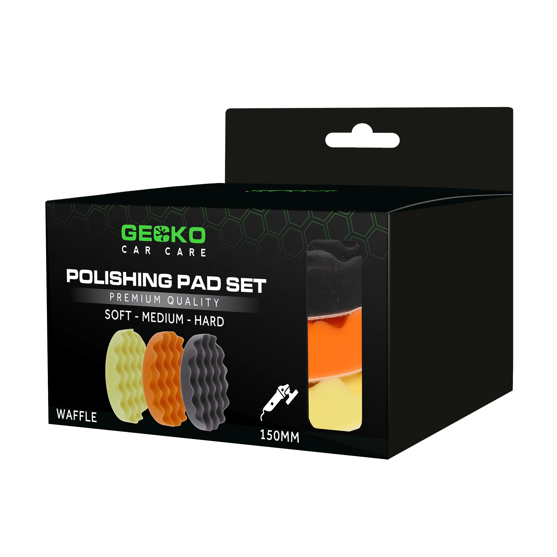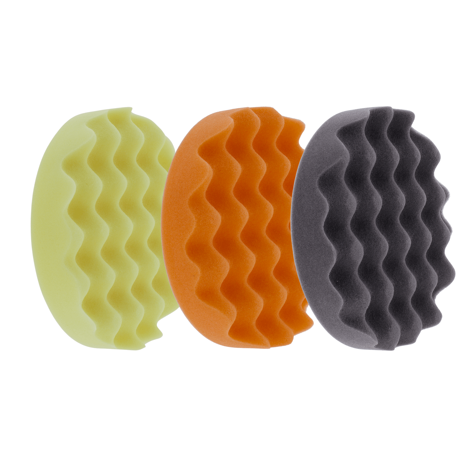 Deze set bevat drie polijstpads van 150 mm in verschillende kleuren, elk bedoeld voor grof, middelmatig en fijn polijstwerk. Ze passen op een steunplaat van 125 mm. De set bestaat uit pads in de kleuren zwart (zacht), oranje (medium) en geel (hard). Wat deze pads onderscheidt, is hun speciale wafelpatroon, dat zorgvuldig is ontworpen om de warmteafvoer te verbeteren. Hierdoor wordt niet alleen een soepele polijstervaring gegarandeerd, maar wordt ook het gebruiksgemak verhoogd. Ze zijn compatibel met zowel excentrische als roterende polijstmachines.