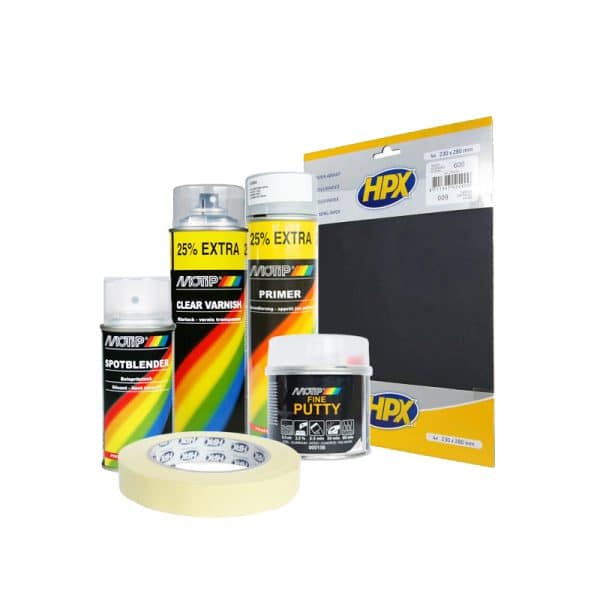 14-delig pakket om zelf een kras in de autolak te bewerken.